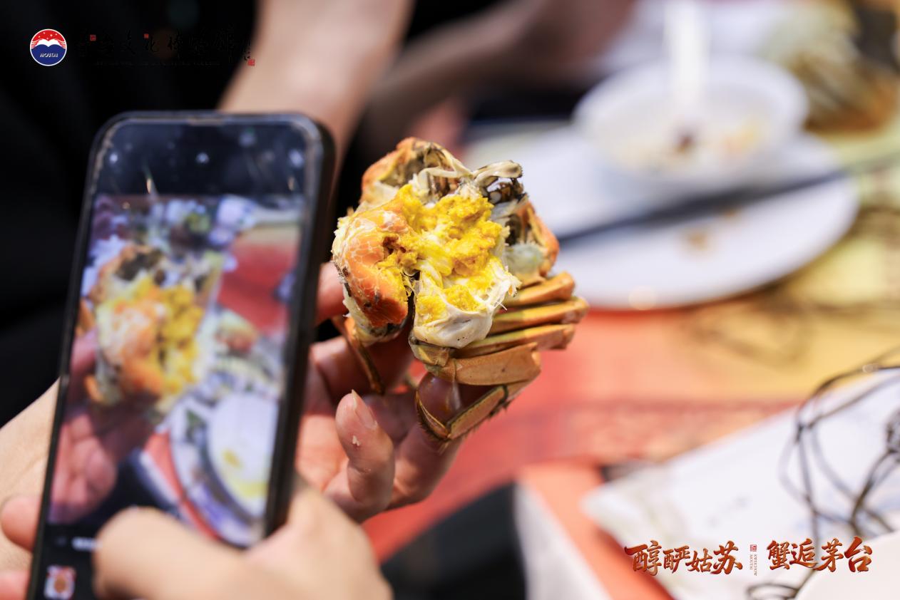 现场专业的蟹文化讲解,不仅分享了品蟹的技法,更道出了其与茅台共通的“道法自然”的哲学。而当蟹黄的醇厚鲜甜与茅台酒的醇郁酱香在口中相遇,奇迹悄然发生。茅台酒不仅巧妙地化解了腥气,其复杂的香气结构与绵长回味,更如同一个风味的放大器,将蟹之鲜美衬托得淋漓尽致,并与之交融出更为悠远曼妙的层次,完美诠释了何为“美酒佐餐”的和谐之境。