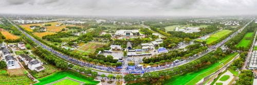 赛道沿途缤纷的色彩交相辉映,金黄的稻田,翠绿的树木,雪白的阁楼,缤纷的风车,还有彩虹跑道在脚下蔓延,将沪浙两地一个个田美的乡村巧妙地连接在一起,如同奔跑在一副徐徐展开的多彩画卷之中。途径沪浙交界的南北山塘村,你将感受到“宛似姑苏城外路,烟波十里荡轻舟”的江南秋韵,您将感受到“三农”最美的模样,尽览沪浙两地现代化农业发展宏图。