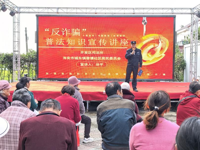 为进一步提升村居民法治素养,营造尊法、学法、守法、用法的法治氛围,近期,海安市开发区司法所联合热港村、蓉塘社区组织开展了一系列形式多样、内容精准的普法宣传活动,将法治精神融入居民日常生活,为构建和谐社区注入法治动能。
