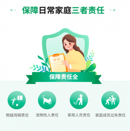 熊孩子损坏邻居财物、宠物咬伤路人、保姆受伤皆可赔,最高30万元第三者责任险,化解90%家庭纠纷风险。