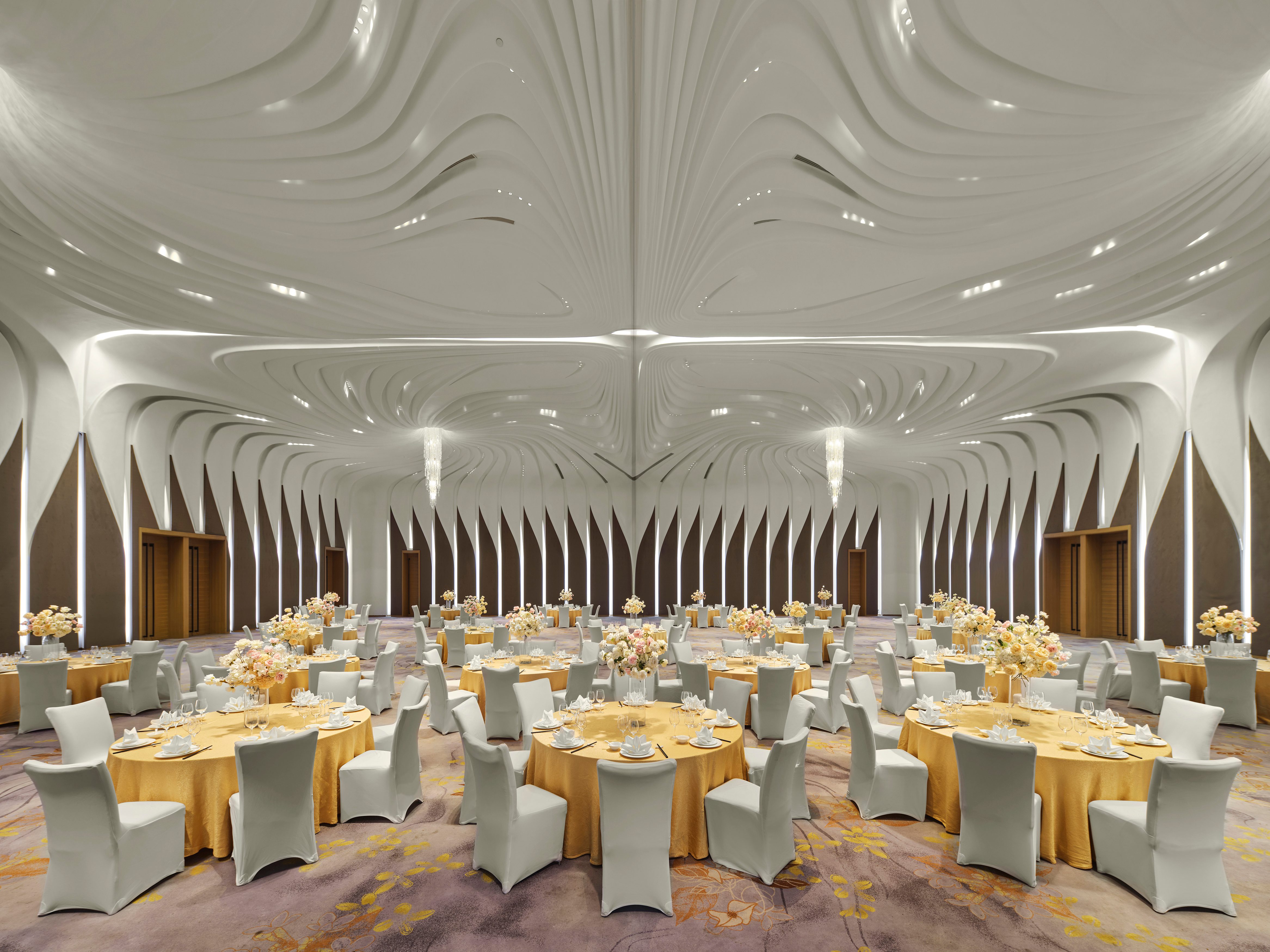 酒店由建筑大师扎哈·哈迪德亲手设计,其标志性的解构主义风格,为会议功能赋予了无与伦比的未来感与灵活性。无柱开阔主场:多个大型宴会厅及会议厅采用无柱结构,视野开阔,为舞台搭建、创意布局提供了无限可能,并配备专业级音响与高清LED大屏。灵活细分空间:拥有55间面积从50㎡至200㎡不等的中小型会议室,涵盖董事会议室、贵宾接待室等,配备智能会议设备,精准匹配从私密洽谈到中型研讨的多元化需求。