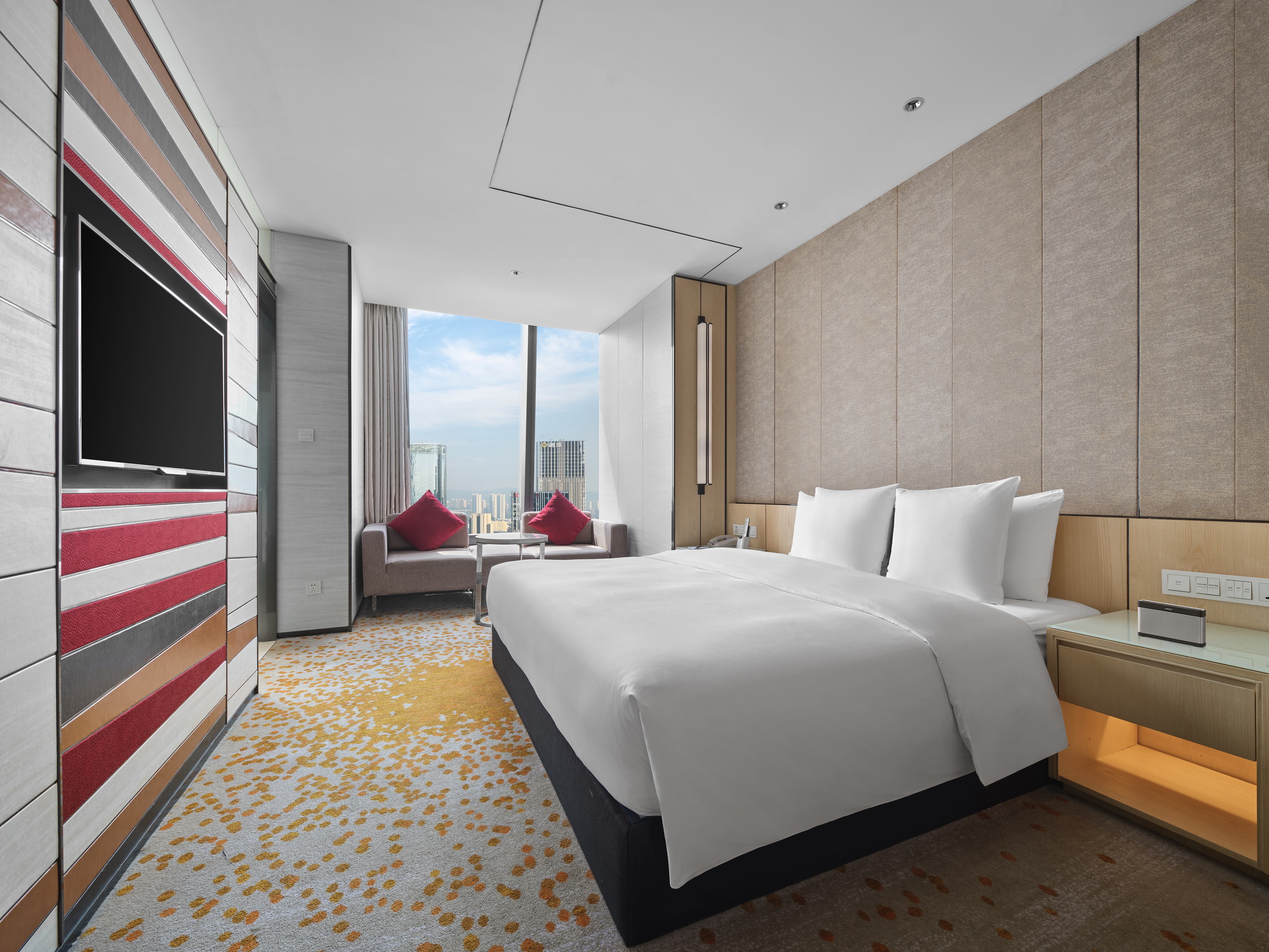 酒店致力于为每一位参会者提供从休憩、餐饮到商务支持的一站式高端体验。舒适下榻体验:拥有717间客房及122间服务式公寓,配备高速网络与智能控制系统,并为团队入住提供高效专属通道。多元化餐饮保障:4间特色餐厅可定制千人级自助餐、主题茶歇及清真/素食等特殊菜单,满足全球宾客的饮食需求。完善支持设施:大型停车场、专业商务中心、健身中心与室内恒温泳池,全方位支撑高强度商务活动与身心放松。